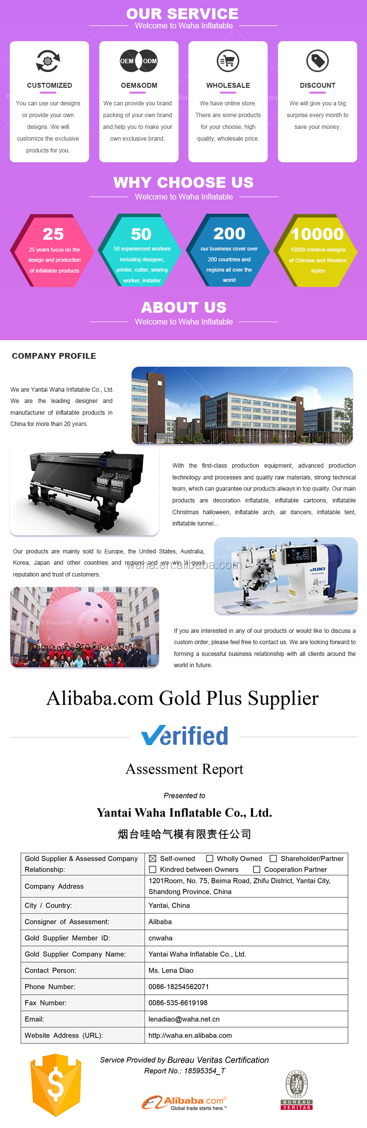 Yantai Waha Inflatable Co., Ltd., established in 2011, specializes in event inflatable products, offering 19 years of integrated design, production, and sales. The company focuses on inflatable cartoons, arches, and advertising signs, enhancing event atmospheres with innovative lighting solutions. With a strong domestic market presence, it delivers high-quality products and exceptional service.